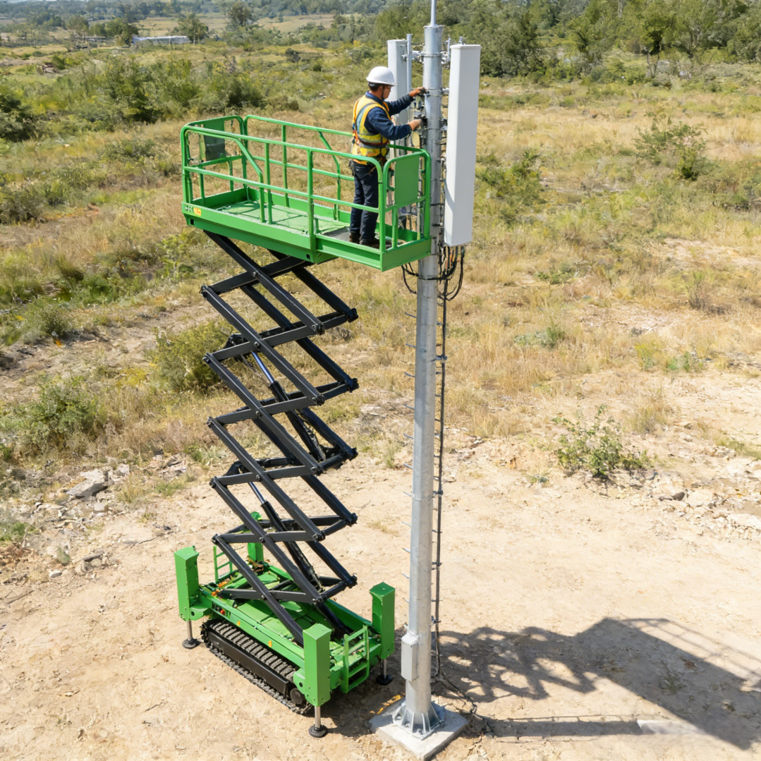 3.Energy, Utilities & Telecommunications: Supports power line maintenance, solar panel installation, wind turbine servicing, and communication tower work. Its stable lifting platform and precise control allow safe operation on challenging outdoor terrains.